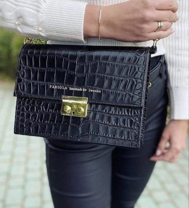 Torebka Skórzana Amelia I M Czarny CroCo mat GOLD