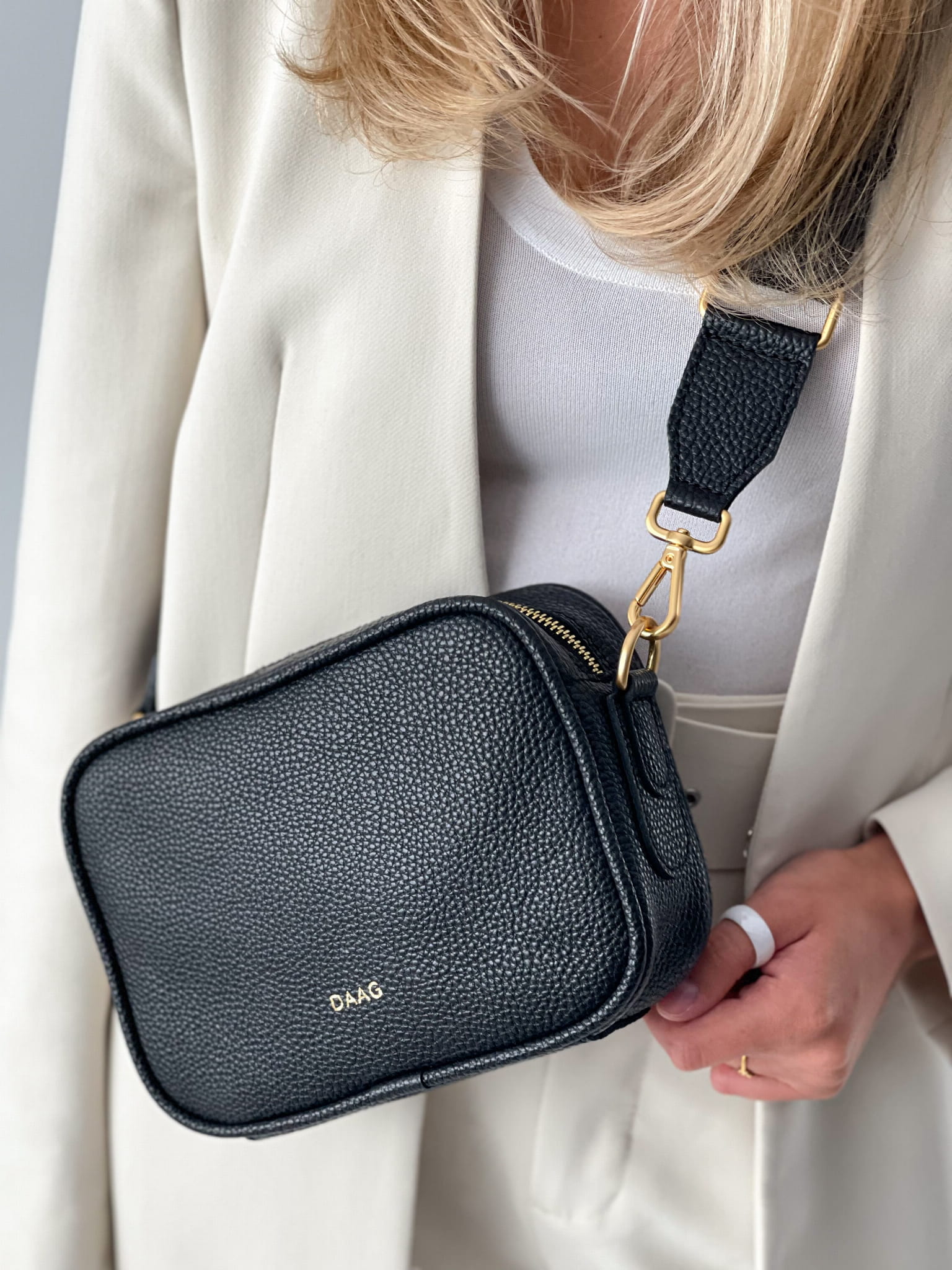 BETTY czarna mała skórzana torebka damska listonoszka
