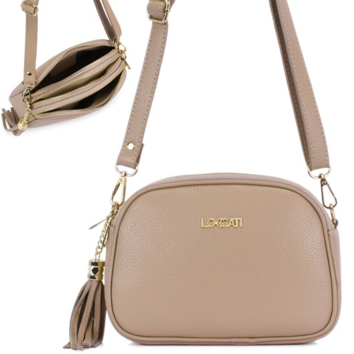 Beżowa mała torebka damska listonoszka skórzana
