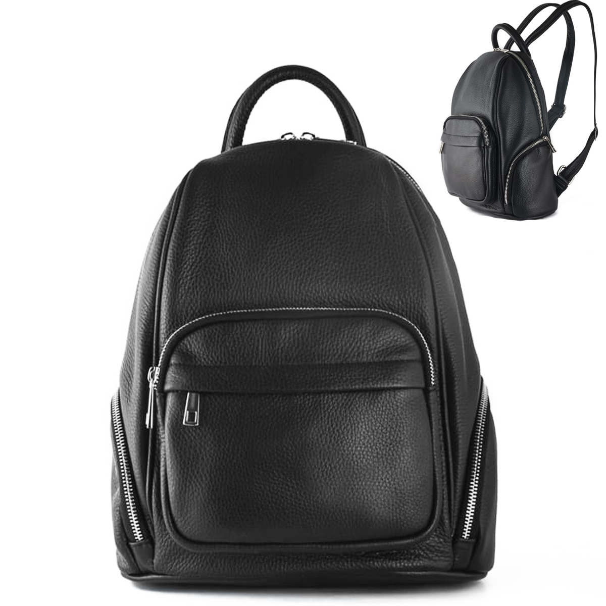 Włoski skórzany plecak damski czarny (id 1013)