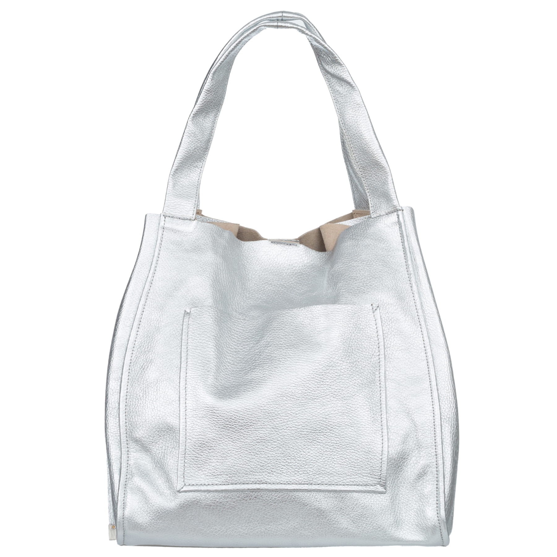 VERA PELLE torebka damska skórzana shopper z saszetką na ramię V497 srebrna