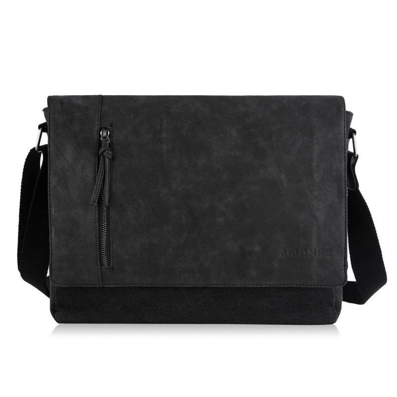 Torba męska na ramię czarna A4 vintage canvas SP 06 BL