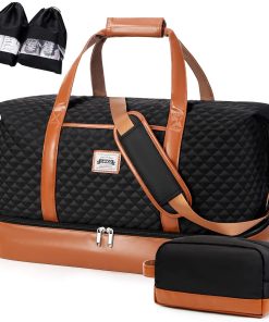 Torba podróżna, damska torba weekendowa, z płótna, duża torba podróżna dla kobiet, torba do noszenia na ramieniu, z kieszenią na buty, idealna dla kobiet w podróży lub do codziennego użytku, beżowy, :