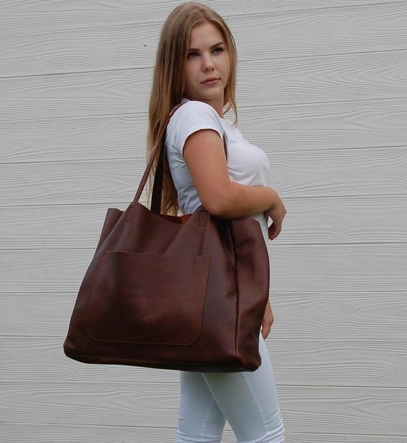 Duża torebka damska ze skóry z kieszenią