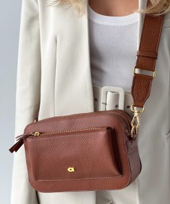 EMMANUELA koniak skórzana torebka damska listonoszka torba na ramię