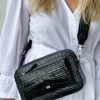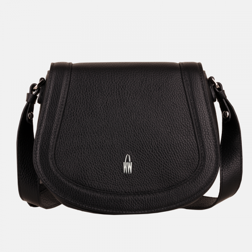 WOJEWODZIC ▷ MIRA Czarna listonoszka skórzana « rozmiar mały « crossbody « na ramię « zapięcie magnes « kieszonka na telefon « nóżki ochronne « pasek regulowany « materiał skóra naturalna groch « dodatki srebrne « sklep internetowy