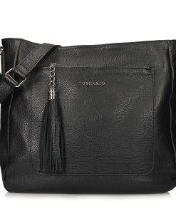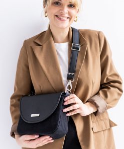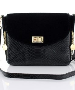 Skórzana damska torebka listonoszka czarna Kolory czarny