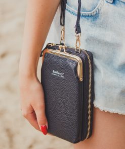 Mini Torebka Damska Portfel Na Telefon Etui Kopertówka Czarna