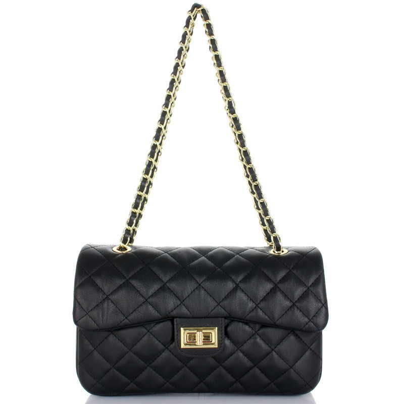 Czarna pikowana włoska skórzana torebka damska Vera Pelle