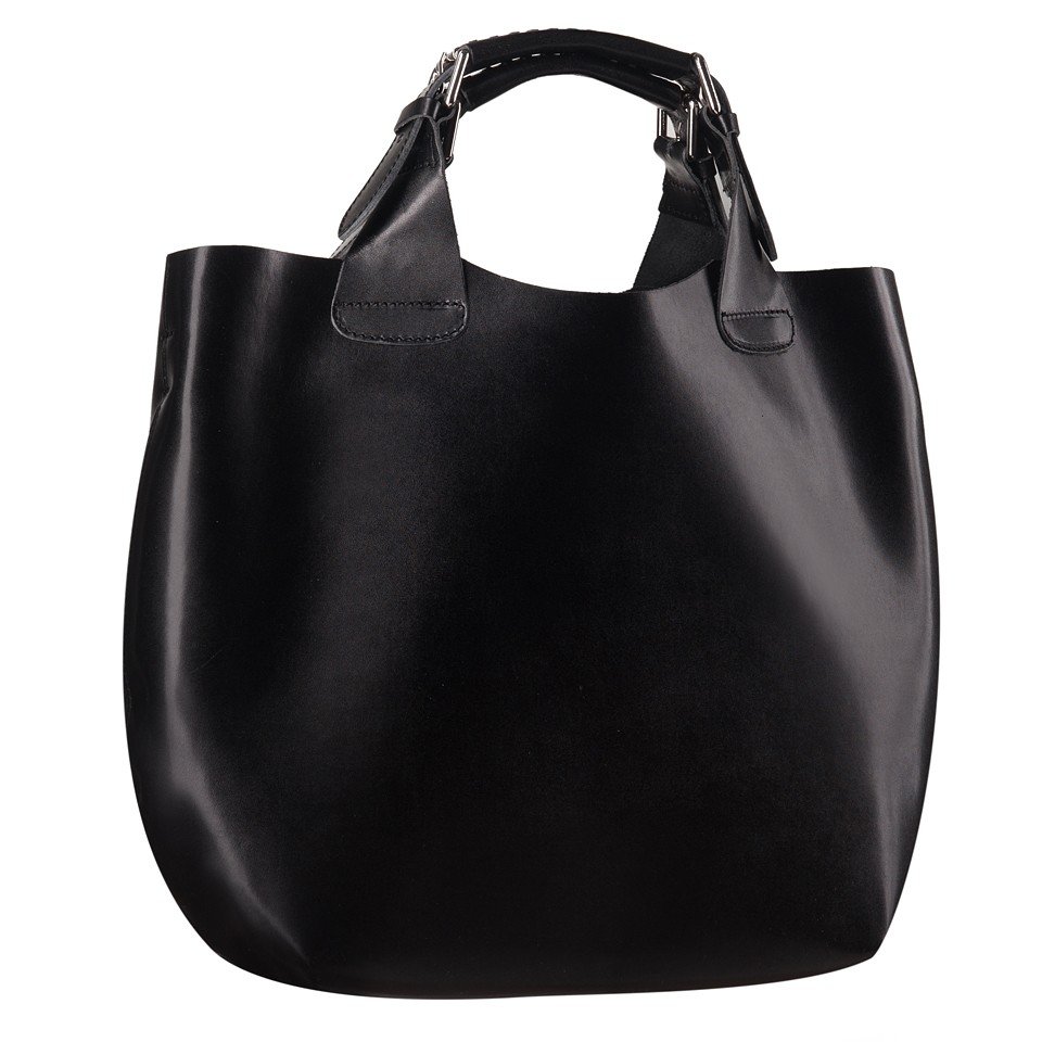Włoska czarna A4 klasyczna XL skórzana torebka shopper bag