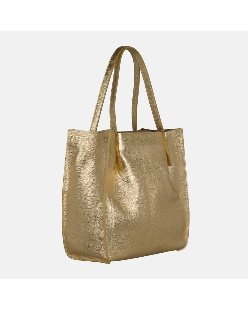 WOJEWODZIC ▷ TALIA Złota torebka skórzana « rozmiar duży « do ręki « na ramię « zapięcie magnes « pomieści format A4 « materiał skóra naturalna groch « dodatki złote « sklep internetowy