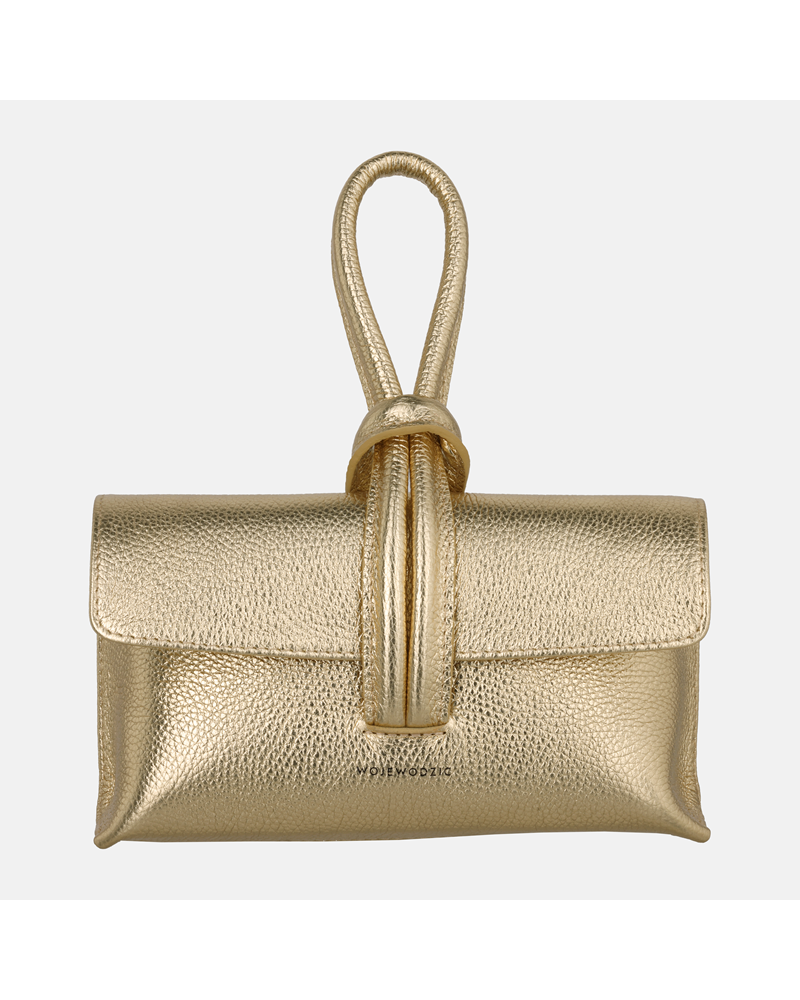 WOJEWODZIC ▷ PIXIE Złota torebka skórzana « rozmiar mały « do ręki « zapięcie pasek przez szlufkę « materiał skóra naturalna groch « dodatki złote « sklep internetowy